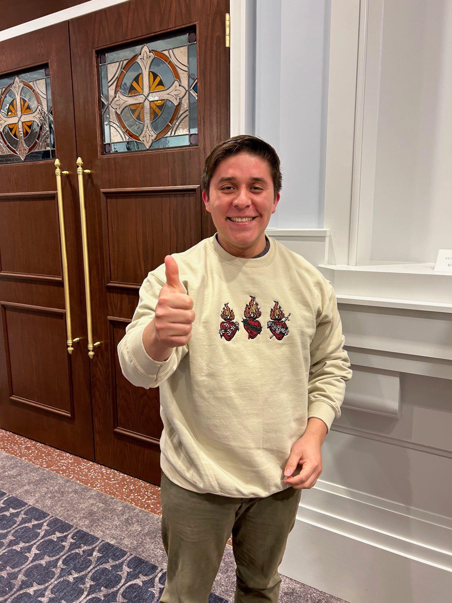 Embrace your faith with our exclusive Hearts of the Holy Family sweatshirt. Designed for the modern believer, Crafted from soft, high-quality fabric in a versatile beige, this sweatshirt is perfect for layering or making a statement on its own.